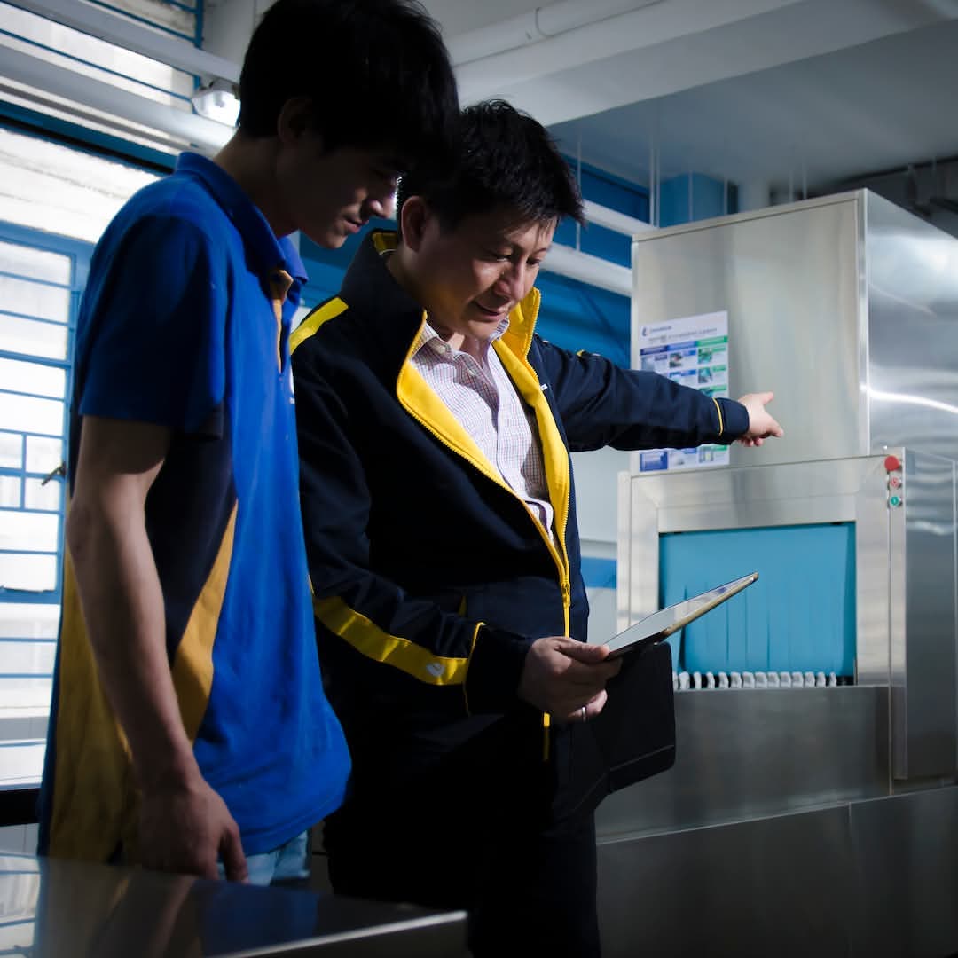 我們自設雙廠,具備獨立生產洗碗碟機及專用清潔劑的能力,由同一技術團隊全程供應與驗證,確保配方一致、品質穩定,滿足酒店高標準營運需求。
