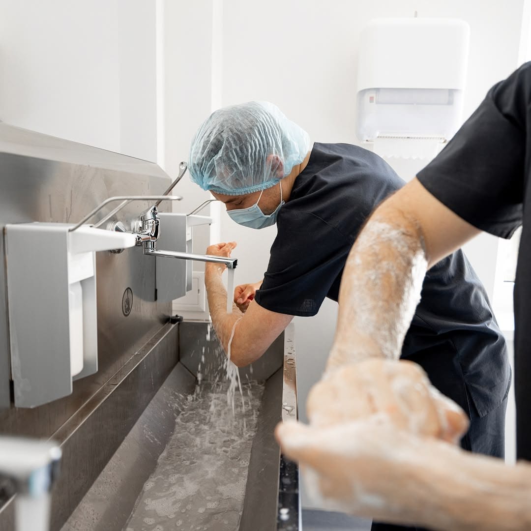 我們提供全系列獲 HACCP 認證的清潔消毒產品,確保在食品加工環境中安全使用。配備高效的智慧型大型器皿清洗設備或智慧型洗碗碟機,自動化完成生產工具的清洗消毒,提升流程標準化與可追溯性。針對牆壁及地板清潔,使用專用清潔劑 661 Foam Clean Plus 配合 620 Bio-Source 高效消毒劑(可搭配熱水/蒸氣使用),有效清潔生產空間各重點區域。設備及用具每日深度清潔則採用 CIP(在線清洗)與 COP(離線清洗)程序,並搭配 612 Bio-Source 含氯消毒液,確保表面無殘留,有效防止二次污染。