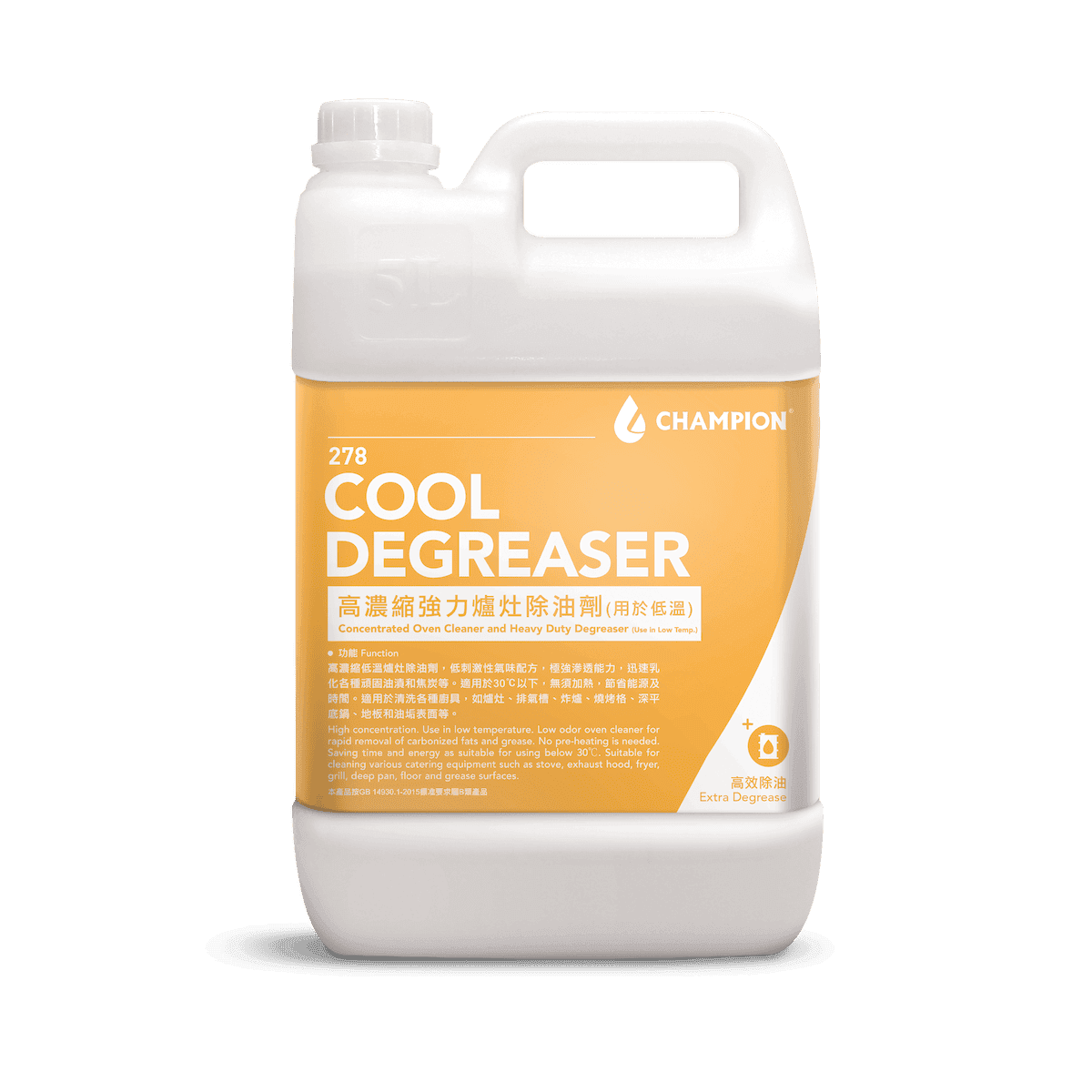 革命性的高浓缩低温除油剂,专为在常温或低温(60°C以下)表面发挥最大效能而设计。从此告别耗时的设备冷却与重新加热流程,直接清洁,提升厨房运营效率,节省宝贵能源。其先进配方能迅速渗透、乳化并分解各种顽固油渍和焦炭,适用于清洁厨具、炉灶周边及不锈钢墙身等。