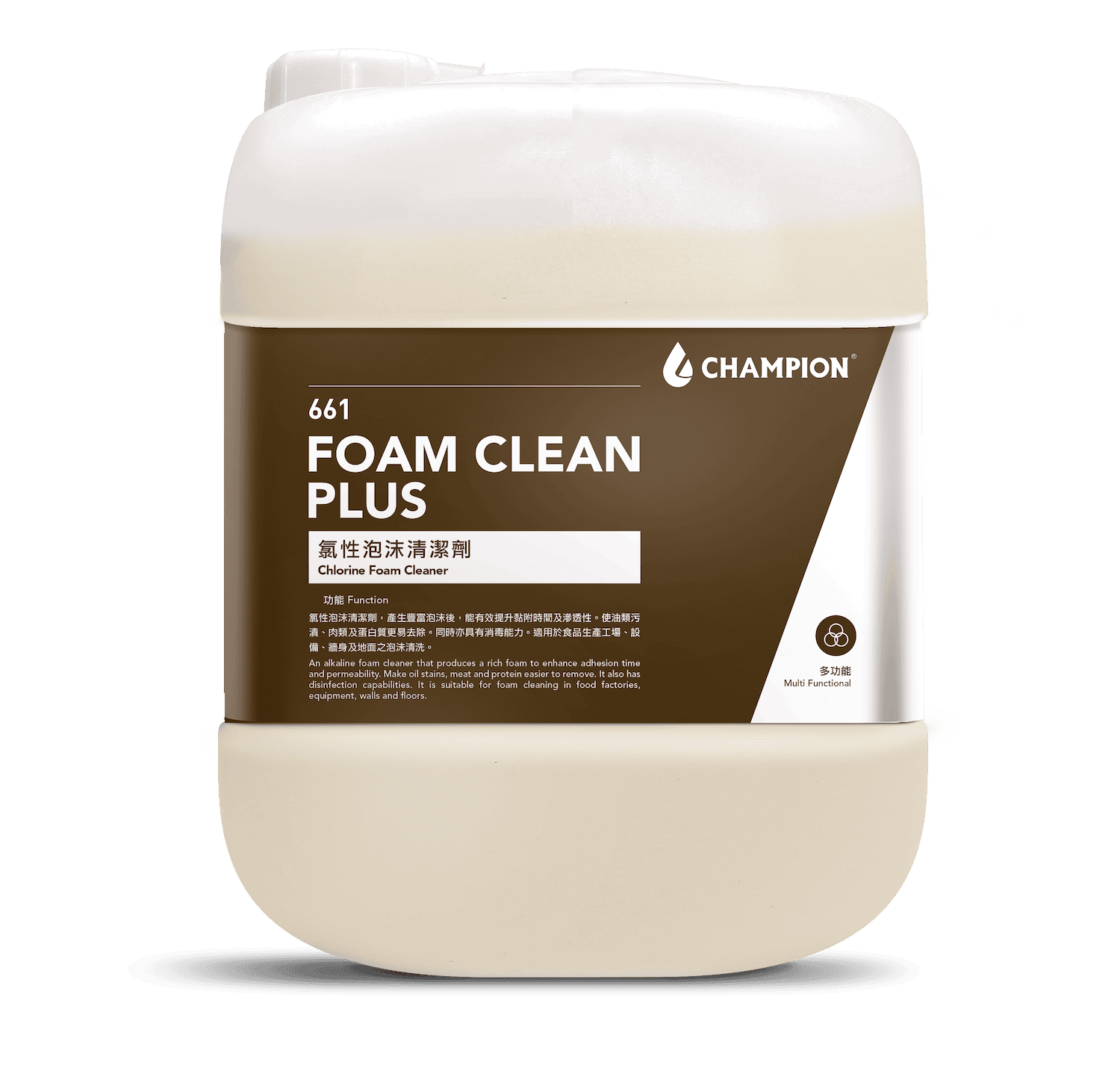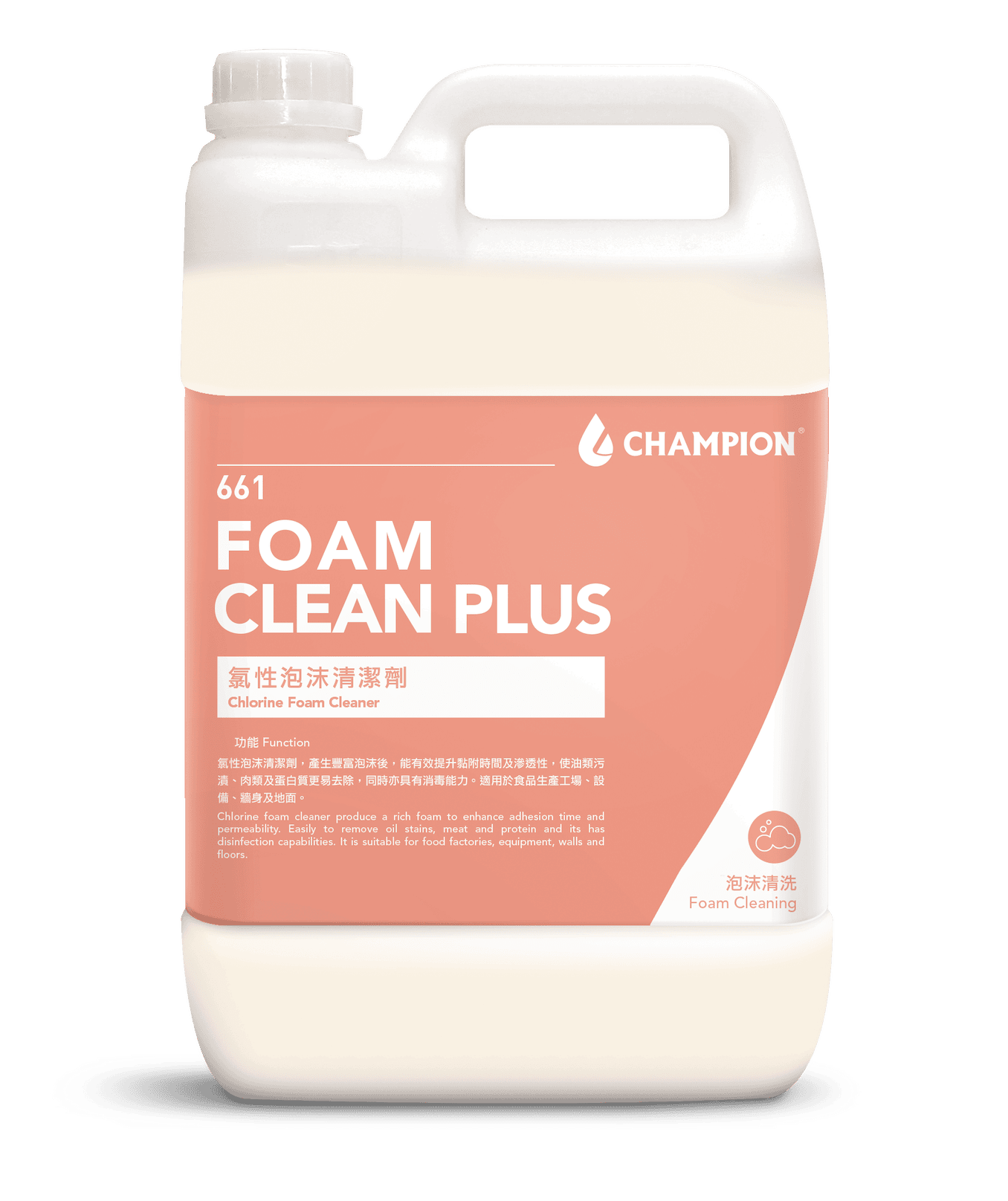 專業鹼性配方能快速分解食品工場常見的油脂及蛋白質等頑固污漬,使其易於沖洗。