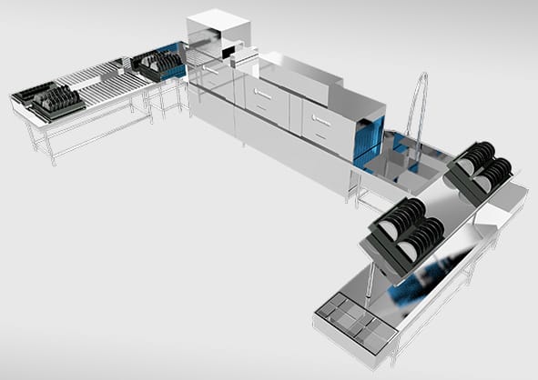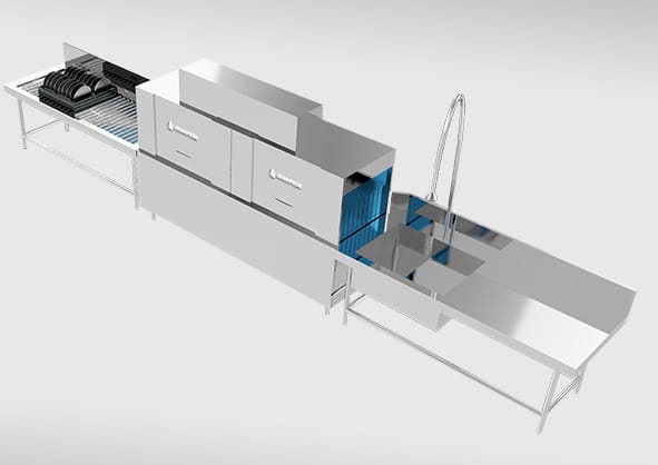 大小尺寸 (毫米):1652寛*695深*1913高 容量適配 (座位):400-600 總功率:63.75 千瓦 開門高度 (毫米):通道式 洗滌時間:13 秒/篩 用水量:2.2 升/篩